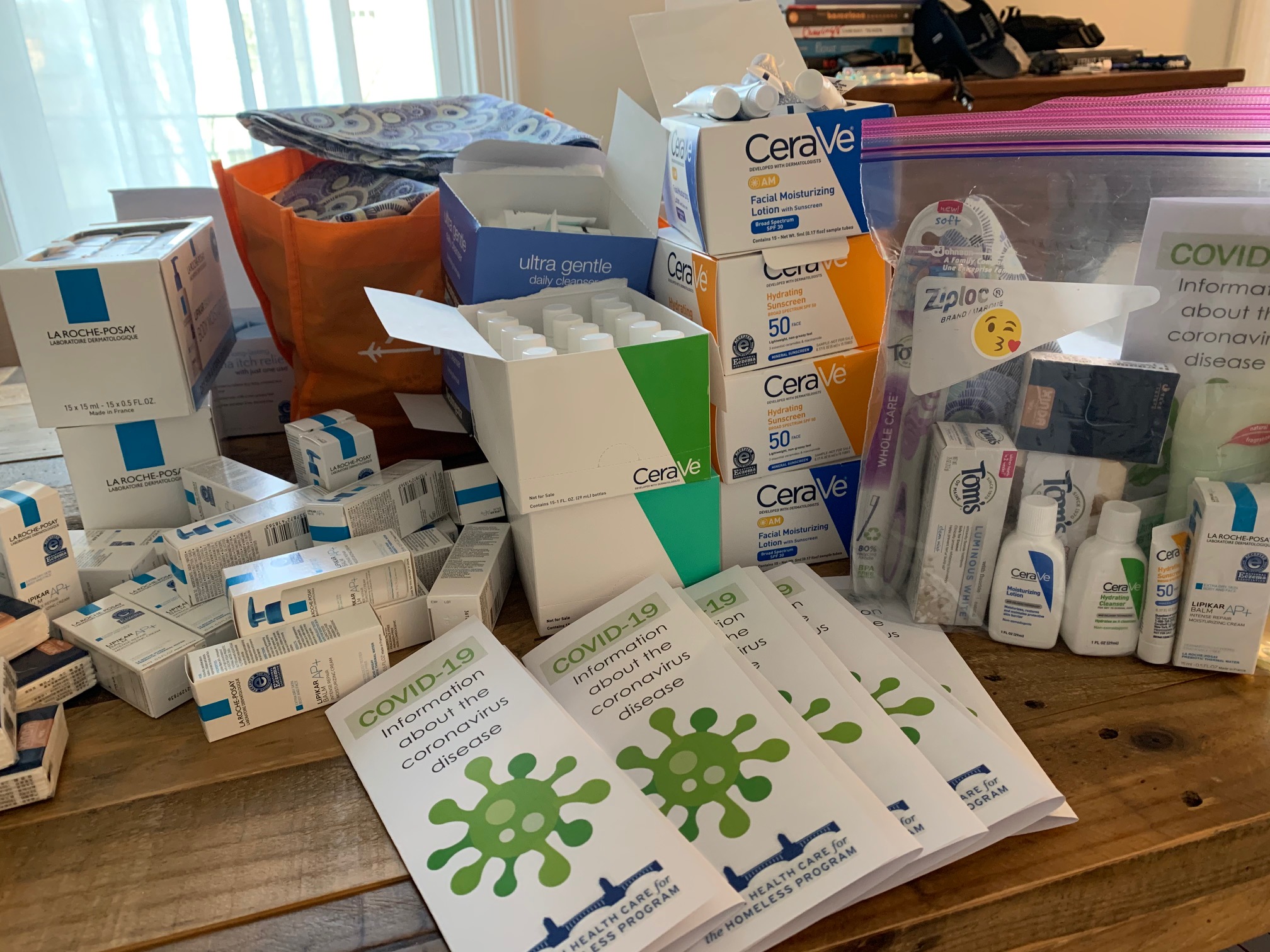 Haya Raef: I was rotating with Dr. Tan at the BHCHP just before the coronavirus pandemic hit. Inspired by the diagnosis-specific skin care kits that Dr. Tan has been assembling, the idea of creating COVID care kits for individuals experiencing homelessness arose. The spread of COVID-19 has exacerbated many of the unique challenges that homeless communities already face. Patients are unable to socially distance and have limited access to hygienic supplies. We wanted to address the disparities that fall upon this population, by providing them with the necessities they lack. We reached out to BHCHP and the Preble Street Learning Collaborative (PSLC) to see if they would welcome the kits, and immediately got to work!