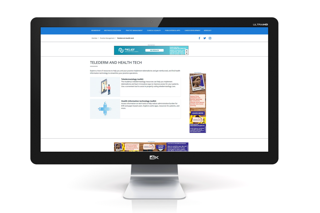 AAD.org is the most authoritative dermatology website in the world. With more than 3.75M unique visitors and 4.5M total visits monthly, AAD.org is extremely popular for both dermatologists and consumers.