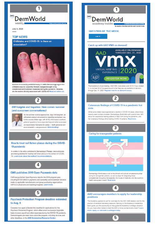 Boost visibility with the DermWorld Weekly enewsletter. Delivered each Wednesday, DermWorld Weekly contains timely, relevant news briefs related to core areas of practice, policy, and patient care, as well as FDA updates and breaking news items of interest to dermatologists.