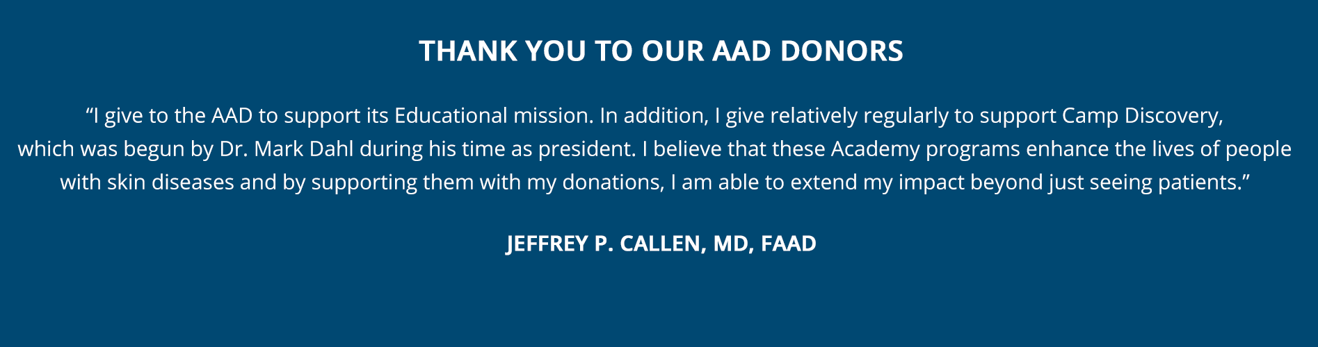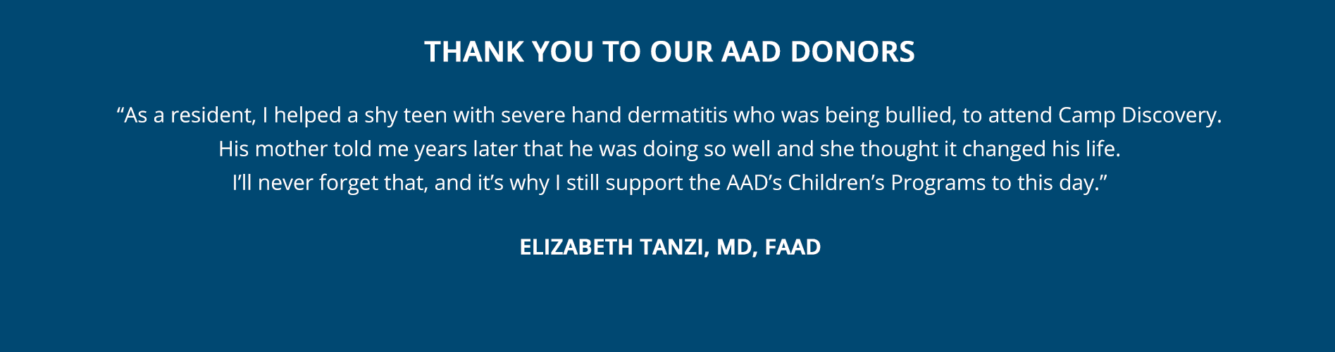 “Our philanthropic support allows the AAD to go beyond what dues alone can accomplish. From camp for kids, to helping residents attend our meetings, our donations benefit both our specialty and the recipients.” - Stephen P. Stone, MD, FAAD
